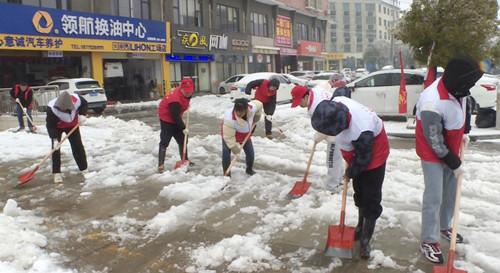 近日,漫天的飞雪与寒冷的冰雨为我市铺上雪白的冬装。为保障群众正常出行,团市委、市文明办、市青年志愿者协会迅速组织青年志愿者清扫公共场所积雪,确保环境整洁、道路畅通。