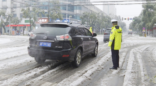 市公安交警大队:雪天执勤保畅通 守护平安出行路