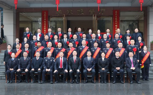 市委政法工作暨平安建设动员部署会召开 王文华与优秀集体代表和先进个人合影留念
