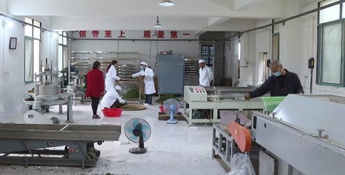 桃林镇苎麻社区党总支部书记刘齐翔:合作社现在每天加工鲜叶800多斤,生产干茶200多斤。