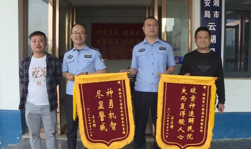 4月22日上午,湖南省发达陶瓷有限责任公司负责人先后将写着“破案神速解民忧,失而复得暖人心”“雷霆出击,破案神速”等锦旗送到市公安局云湖派出所和刑侦大队,感谢民警及时破案并追回其被盗财物。