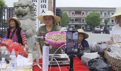 活动现场,江南镇的农户们纷纷把干豆角、土鸡蛋、艾叶等特色农产品送入电商直播团队,在主播们热情介绍下,很快这些农产品就被销售一空。