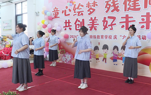 5月31日上午,长沙市临湘商会携手小家庭餐饮组织爱心志愿者在市特殊教育学校开展六一公益活动。