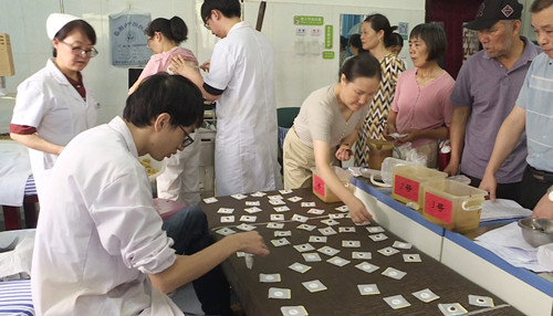 在市中医医院,医生正为前来贴敷的市民问诊、开方配穴,并根据患者的需求,在不同穴位贴上“三伏贴”,耐心叮嘱他们贴敷时间及注意事项。