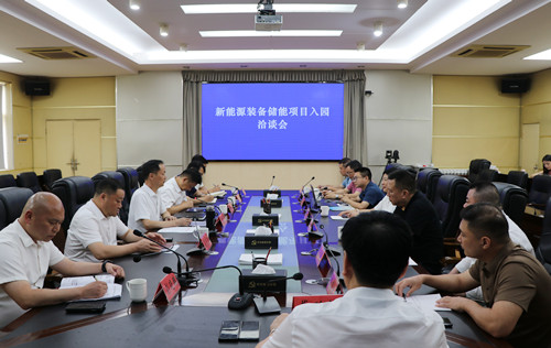 7月19日下午,市委书记王文华与客商洽谈新能源装备储能项目合作事宜。市领导吴国良、吴天星等参加。
