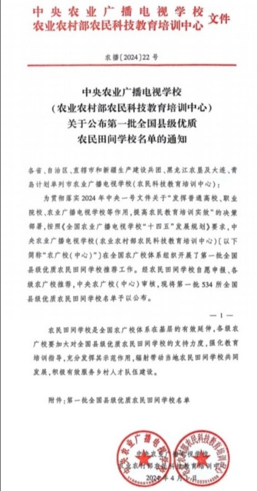 近日,中央农业广播电视学校印发《关于公布第一批全国县级优质农民田间学校名单的通知》,湖南省27所农民田间学校被评为“全国县级优质农民田间学校”。其中,我市牛燕养殖专业合作社农民田间学校榜上有名。