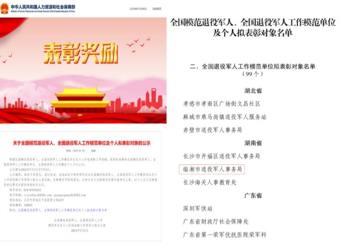 市退役军人事务局荣获2024年全国退役军人工作模范单位