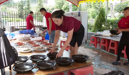8月12日上午,华园家宴餐饮负责人带着精心挑选的食材,和专业厨师一同前往忠防镇渔潭村王家组,为村民王先生摆设一场既传统又不失新意的喜宴。整场宴席根据王先生的需求,量身定制各种美味菜肴,从精致的开胃小菜到丰盛的主菜,再到精心熬制的热汤,每一道菜品都经过厨师们的精心烹饪,让王先生的亲朋好友在享受美食的同时,也能感受到家的温暖与舒适。