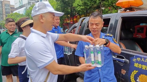 活动中,爱心志愿者们纷纷走上街头巷尾,将一件件清凉的矿泉水分发给环卫工人、外卖小哥、城管等户外劳动者,用实际行动传递“小城大爱”,同时,叮嘱他们在炎热天气下工作,一定要注意补水降温,预防中暑。