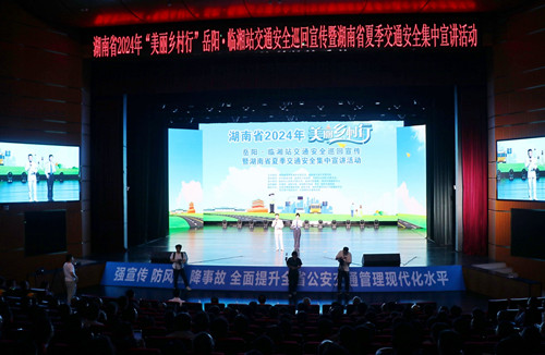 9月20日,湖南省2024年“美丽乡村行”岳阳·临湘站交通安全巡回宣传活动在我市隆重举行。省道安委副主任、省公安厅副厅长胡志文,岳阳市政府副市长、市公安局局长提名人选秦山成,省公安厅交警总队政委吴冰等出席活动,我市市委书记王文华致辞,市委副书记、市长刘琦出席。来自全市的居民群众、学生、村民代表,外卖骑手、“两客一危一校”驾驶人代表共计700余人参加活动。