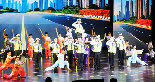 最后的歌舞《人民交警砥砺前行》将展演引向高潮,它的作词者、演唱者、舞蹈演员都是岳阳基层民辅警,他们把对人民交警的理解以及对公安交管工作的感悟,融入到一句句歌词和一个个舞蹈动作当中,体现了人民交警信仰坚定、忠诚履职、昂扬向上的精神风貌!