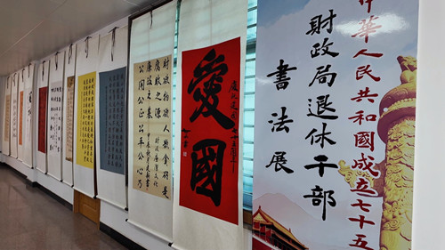 9月24日上午,市老年书法协会在市财政局举办迎国庆书法展。