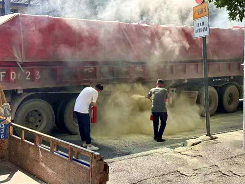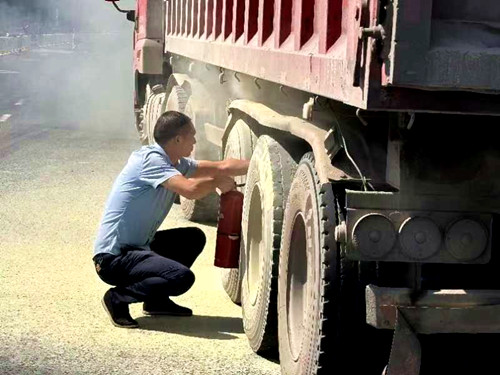 一场与时间的竞速就此展开。15 分钟,用了10 个干粉灭火器、2 个二氧化氮灭火器,终于成功扑灭大火,消除了车辆爆炸隐患。