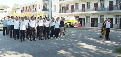 活动中,青年干部们身着正装,整齐列队,在鲜艳的党旗下重温入党誓词、聆听党的二十届三中全会精神,表达了对党的忠诚和对祖国的热爱。随后,青年干部们还前往6501国防教育基地瞻仰毛泽东主席铜像,并主动将铜像周边的杂草进行了全面清理,以实际行动表达对伟人的崇高敬意和深切缅怀之情。
