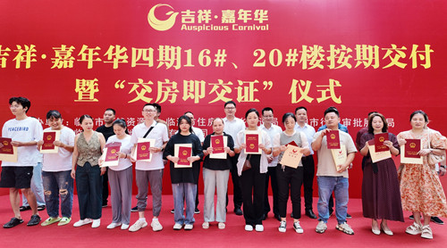 颁证仪式上,吉祥·嘉年华15户业主领取到了不动产权证书和新房钥匙,实现了交房和领证零时差、零等待的“无缝对接”,充分保障购房者权益。