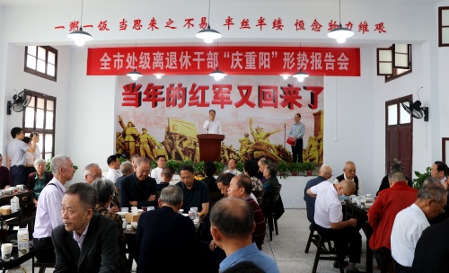 冉冉秋光里,佳节又重阳。10月11日上午,全市离休、处级退休干部“庆国庆 迎重阳”参观视察活动举行,老干部代表相聚一堂,共度重阳佳节,共传敬老美德,共话发展新篇。市委书记王文华,市委副书记、市长刘琦,市领导吴国良、刘立红等出席活动。