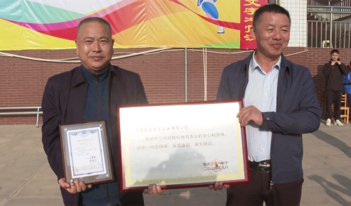 活动中,市教体局负责人还现场为湖南盛亚体育实业有限公司颁发证书,感谢该公司长期以来对我市教育事业的关心与支持。