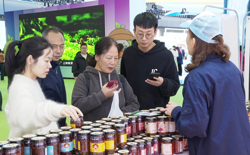 11月17日上午10点,农博会现场人头攒动,热闹非凡。在“十三村”香菇酱展位,前来品尝和购买的消费者络绎不绝。来自衡阳市的顾客罗有志,每届农博会都会特意赶来抢购香菇酱,与亲朋好友共享这份美味。