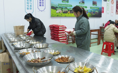五里牌街道供销合作社负责人李小燕:幸福食堂所用的牛肉与蔬菜都来自基地,牛从屠宰到端上餐桌,只需要2个小时,保证了食材的新鲜与健康,我们还提供电话接单、送餐上门服务。