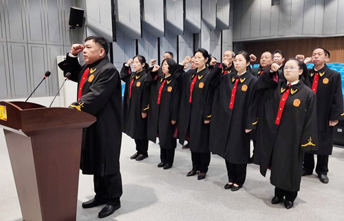 上午8点,法官们身披法袍,面向国旗、高举右拳,以铮铮誓言许下对宪法的忠诚和对人民的庄严承诺。