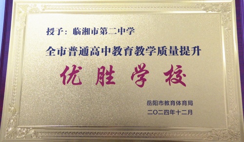 近日,从岳阳市教育教学工作会议上传出喜讯,临湘二中再次荣获“岳阳市普通高中教育教学质量提升优胜学校”荣誉称号,这是该校连续第9年获此殊荣。