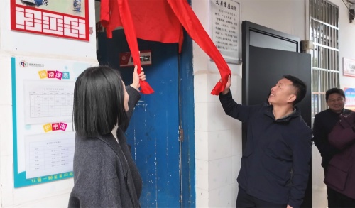 定湖中学党总支部书记潘芬芬:坦渡镇是湖南省诗词之乡,我们定湖中学素来非常重视孩子们的阅读工作,今天天井书屋开馆,它将开启我们定湖中学阅读的又一个新起点,我希望我们定湖中学的每一个孩子都能在定湖中学爱上阅读、坚持阅读、终身阅读。
