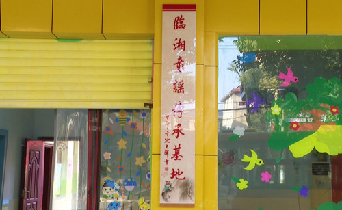 临湘童谣代表性传承人曾晓虎:为了更好地传承发展临湘童谣,我们在基地展示了二十几首童谣,并且将童谣作为特色纳入教学内容,让孩子学会吟唱临湘童谣、传承临湘童谣。