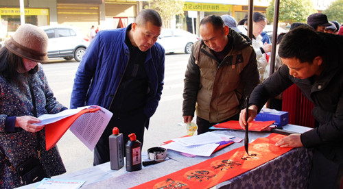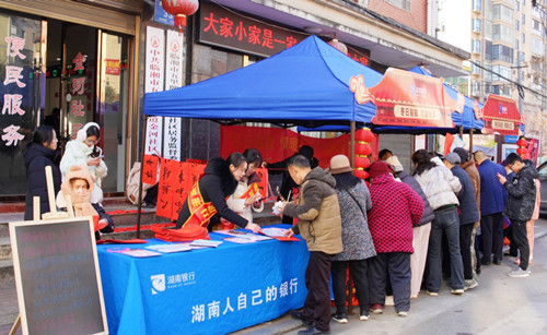 1月16日上午,五里牌街道金河社区与湖南银行临湘市支行联合开展“冬日融融 情暖社区”新春主题活动,为社区居民书写对联,送上诚意满满的新年祝福。