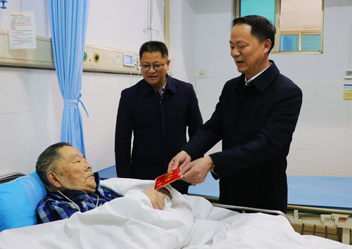 根据岳阳市委统一安排,在新春佳节即将到来之际,1月23日下午,岳阳市人大常委会副主任、临湘市委书记王文华到市人民医院,走访慰问正在住院就医的退役老兵周兴振,向他送去党和政府亲切关怀,并致以新春祝福。