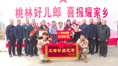 1月24日,副市长、市公安局局长杜卫东一行来到桃林镇坪上村,为荣立二等功的现役军人李锦龙家属送去喜报。