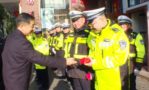 1月28日上午,市委常委、政法委书记夏逢响,副市长、市公安局局长杜卫东一同走访慰问坚守在春节安保一线的民(辅)警,向他们致以节日的问候和新春的祝福。