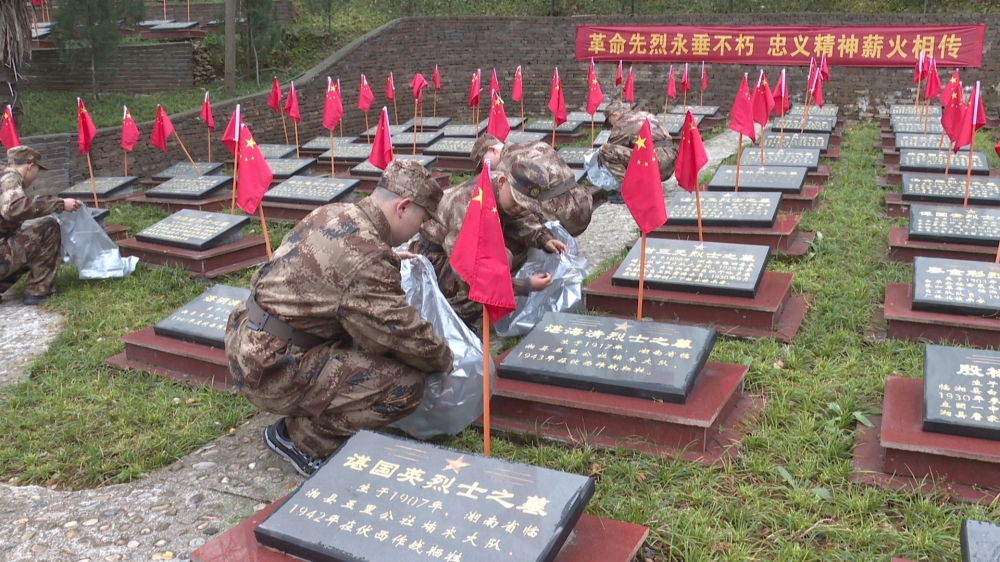 在庄严肃穆的五尖山烈士陵园,市人武部官兵、预定新兵和市退役军人事务局党员志愿者们向烈士纪念碑深深三鞠躬,表达对革命先烈的崇高敬意和无尽哀思。随后,大家分工合作,细心地为墓碑描红、抹洗墓碑上的尘埃,并清理墓碑旁的枯枝烂叶和过道上的垃圾,为烈士陵园营造一个更加整洁、肃静的环境,用实际行动缅怀先烈,守护这片神圣的土地。