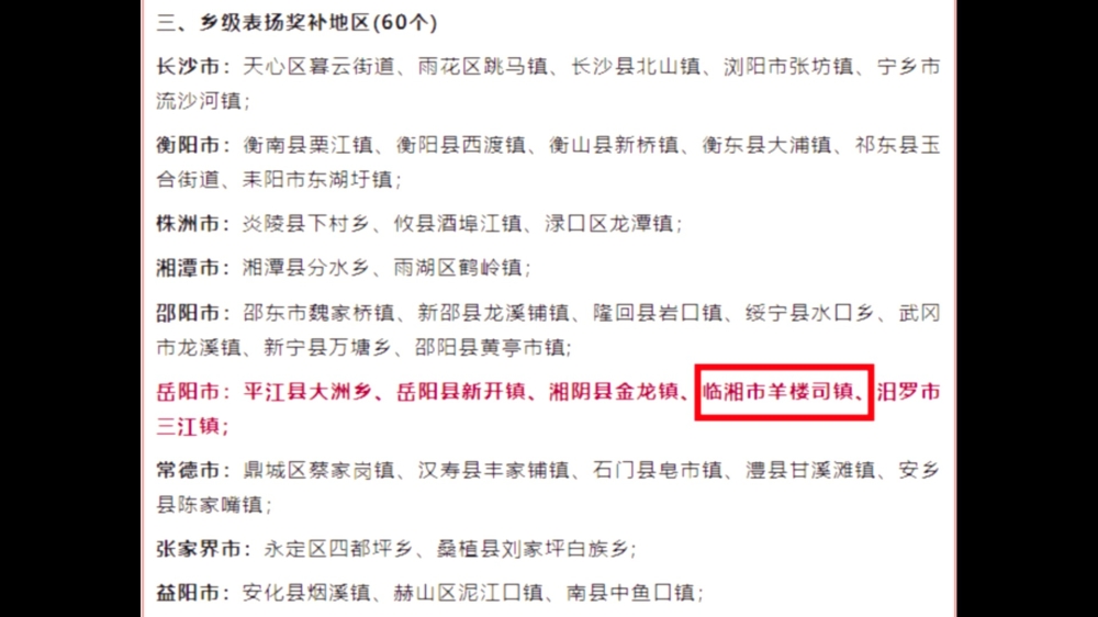 近日,省林长制工作领导小组办公室发布关于对2024年度林长制工作成效明显地区予以表扬奖补的通报,我市羊楼司镇获得省级表扬奖补。