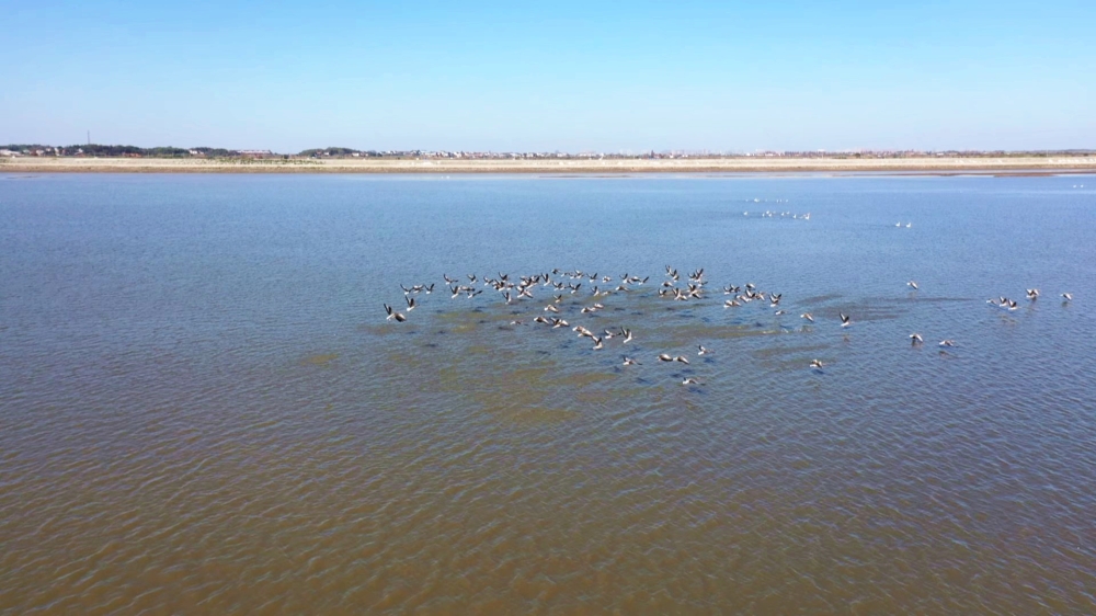 近年来,我市坚持生态优先、绿色发展理念,大力推进生态文明建设,使得黄盖湖水域生态环境得到持续改善,吸引了大量候鸟在此栖息。据统计,在2024年底至2025年3月期间,候鸟数量达到了71000多只,其中包括国家一级保护动物白鹤的身影,数量多达百余只,国宝级鸟类东方白鹳也重现黄盖湖,生动诠释了人与自然和谐共生、和谐共融的美好愿景。