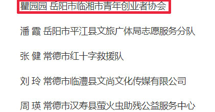 市青创会瞿园园荣获“湖南省最美志愿者”称号