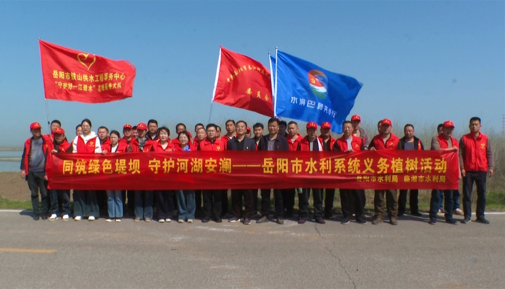 3月21日,在长江干堤临湘塔区域,岳阳市水利局联合我市水利局,组织50多名党员干部、“江湖守望”志愿者开展义务植树活动。大家挥锹铲土、扶苗浇水,在堤岸上种下一颗颗树苗。