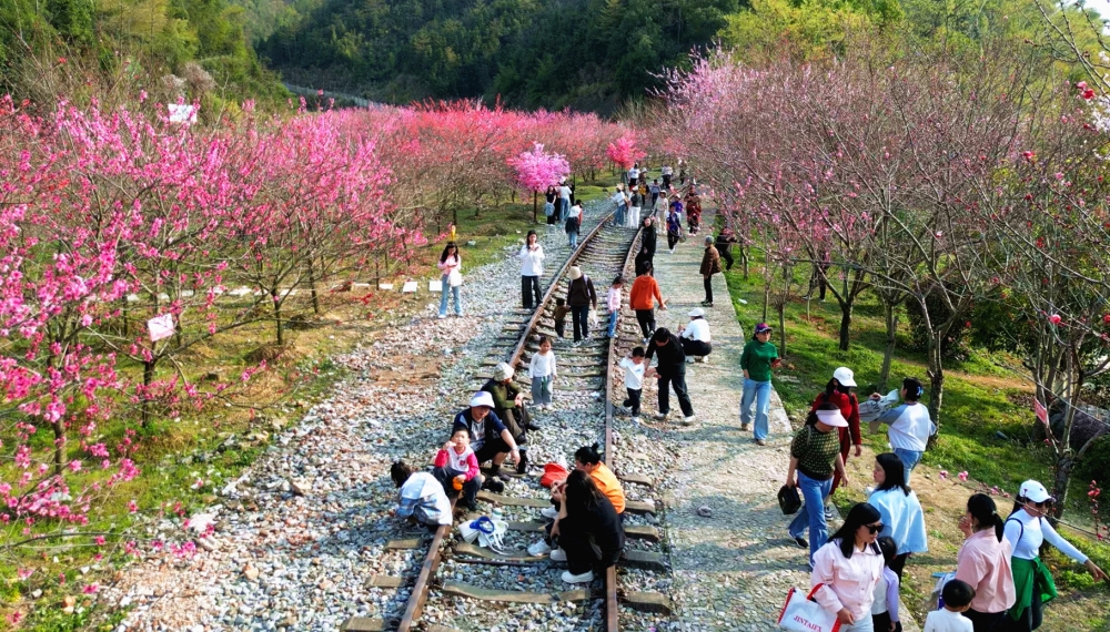 春日的桃花岛化身粉色梦幻世界,蜿蜒小径掩映在花海之中,一场美轮美奂的激光秀上演竹林花海。游客徜徉其间,赏花、闻香、拍照,用镜头“留住”美好春天,沉浸式感受“人面桃花相映红”的诗意画卷。