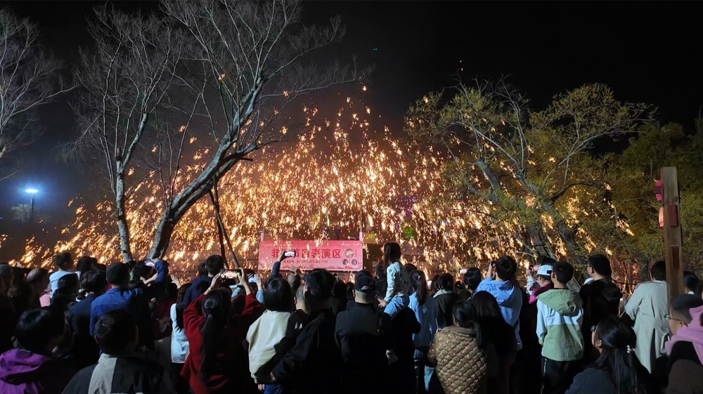 游客熊艳红:每年桃花节我都来,今年的节目太震撼了,打铁花特别惊艳,带孩子来感受传统文化,他特别开心,收获满满。