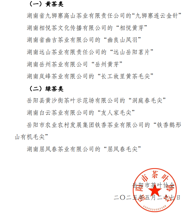 近日,岳阳市茶叶协会通报第二届“岳阳十大名茶”评审结果,其中,我市白石毛尖被认定为“历史名茶”。