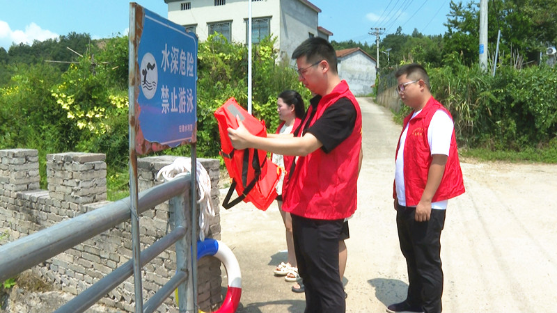 8月4日,五里牌街道许畈村组织党员干部开展防溺水宣传巡查活动。