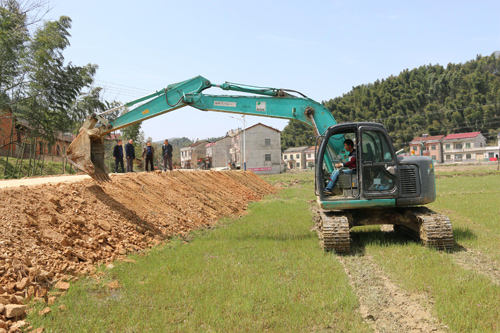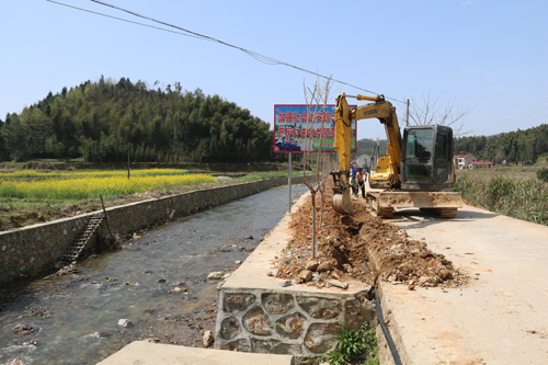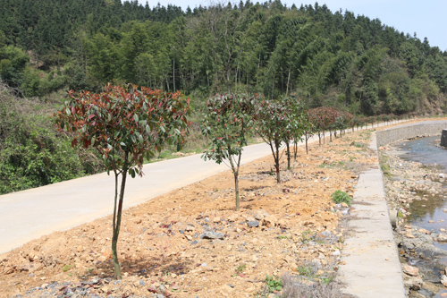 近日,坦渡镇万峰村立新河港新砌挡土墙顺利完工,挖机正在来回穿梭,平整路肩。远处看,近2公里长的樱花与红叶石楠相间栽种,蔚然成形。这是该村投入近30万元打造樱花走廊、发展乡村旅游的一个缩影。