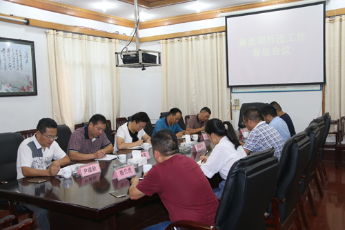 座谈会上,市林业局负责人汇报了黄盖湖内非法网箱与矮围的拆除工作情况,各相关乡镇负责人就责任区内拆违工作进展和遇到的问题与困难作了详细汇报。