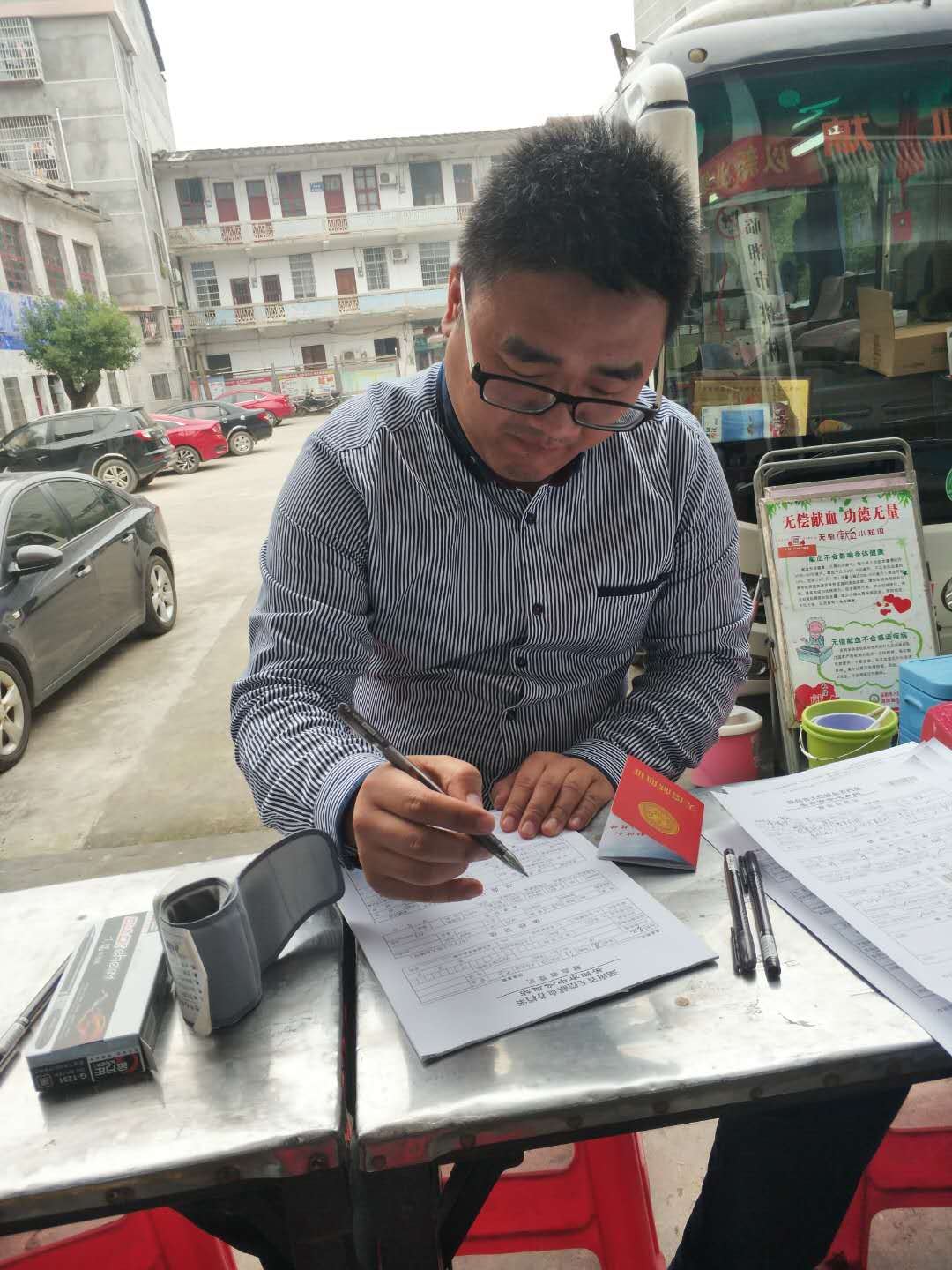戴书记一边献血一边接访群众
