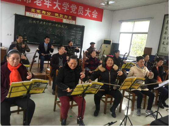 12月5日在市老年大学的二胡版教室里传来一组组悠扬的二胡演奏曲,由临湘市文化馆文化志愿者牵头举办的中老年文艺免费培训二胡班结业汇报演出在这里举行,大家分成几个小组分别演出不同的曲目,真的是你方唱罢我登台,精彩纷呈,汇报演出是个小舞台,让很多平时没有机会上舞台的老年人有了锻炼的平台,极大的调动了老年人的学习二胡的积极性。