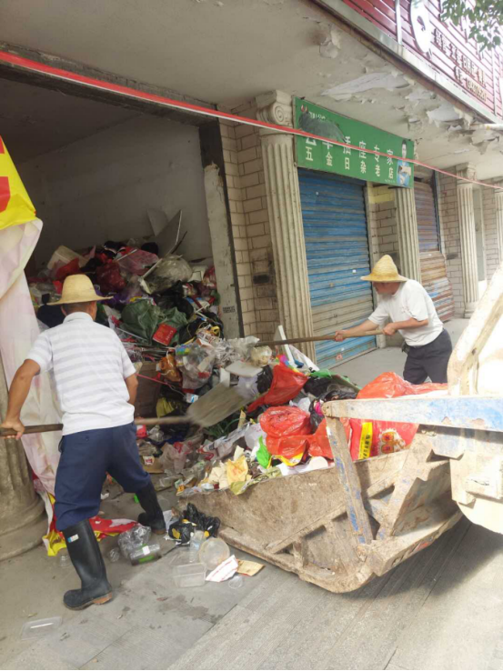 临湘市环卫局接到投诉后,与投诉人取得联系。经查,投诉人反映的是农机局已停用待拆迁的三格门面,转闸门紧闭,但未上锁,长期被一精神病患者占用,并堆积垃圾。周边门店老板与市民也不知所措,不曾向任何单位反映。据谢女士介绍,精神病患者很可怜,又没人管,在空门面里过夜又不便打搅,所以等他离开后,才通过网络查找到“12345热线”救助。谢女士还讲,她投诉的时候特别强调了不是投诉环卫部门,临湘城乡卫生都越来越干净,老百姓都非常满意,只是没有环卫部门电话才打热线电话求助的。环卫局了解情况后,立即组织10多名环卫工人和1辆压缩车上门清理垃圾。有路过市民见到处理情景后,开玩笑说,环卫工人上门服务成了“进门服务”,车子都开进家里了。