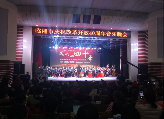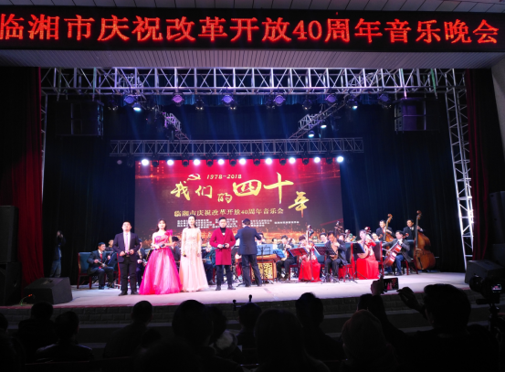 (张日平 唐佳丽)七彩的灯光华丽绽放,美妙的旋律激昂奏响,大幕开了,演出开始了,整个剧场欢呼雀跃,一片欢腾……12月26日晚,临湘市“我们的四十年”庆祝改革开放四十周年音乐会在该市影剧院隆重举行,晚会由中共临湘市委、市人民政府主办,市委宣传部、市文旅广新局、市文联承办,市音协、市舞协、市文化馆、市青少年活动中心、市民管学会协办。