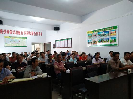 6月4日上午,临湘市各镇惠农服务公司负责人、专业合作社负责人、种粮大户和农资放心店经营业主共50多人,在聂市镇惠农服务公司参加新型农技推广大会。