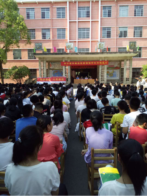 为加强学校禁毒宣传教育力度,贯彻落实全国禁毒宣传教育工作精神,2019年6月4日上午,忠防镇禁毒办联合派出所和法庭,在忠防中学开展“禁毒宣传进校园 筑牢防毒安全墙”禁毒宣传教育活动,全校800名师生参与此次活动。