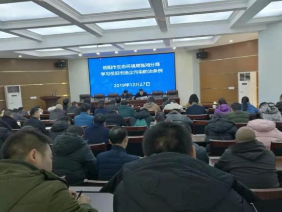 日前,岳阳市生态环境局临湘分局组织学习贯彻《岳阳市扬尘污染防治条例》,对今年12月1日施行的条例生态环境工作进行安排部署。生态环境局临湘分局全体干部职工参加了学习班。