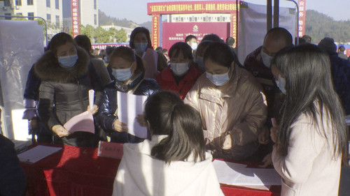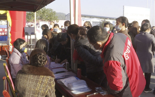 羊楼司镇居民罗星星: “我刚从外地回来,昨晚才到,刚好碰到这里有招聘会就来看一下。听说这边厂还比较可以,而且离家也比较近,就业比较方便,就过来试一下。”